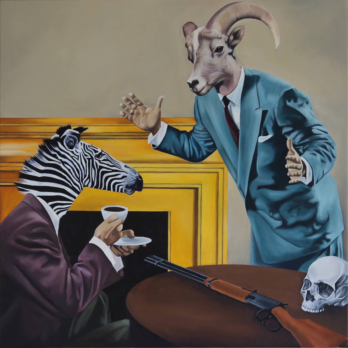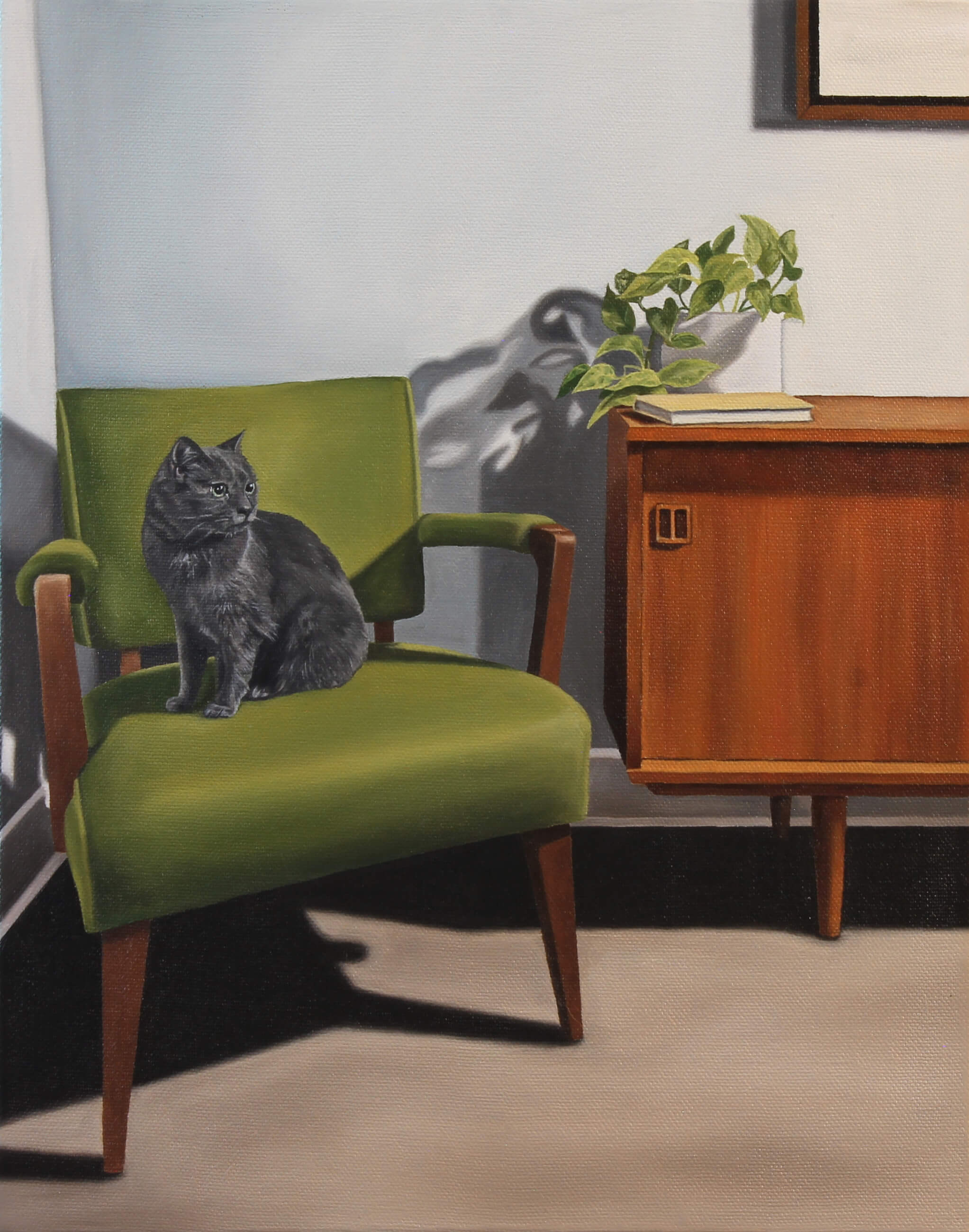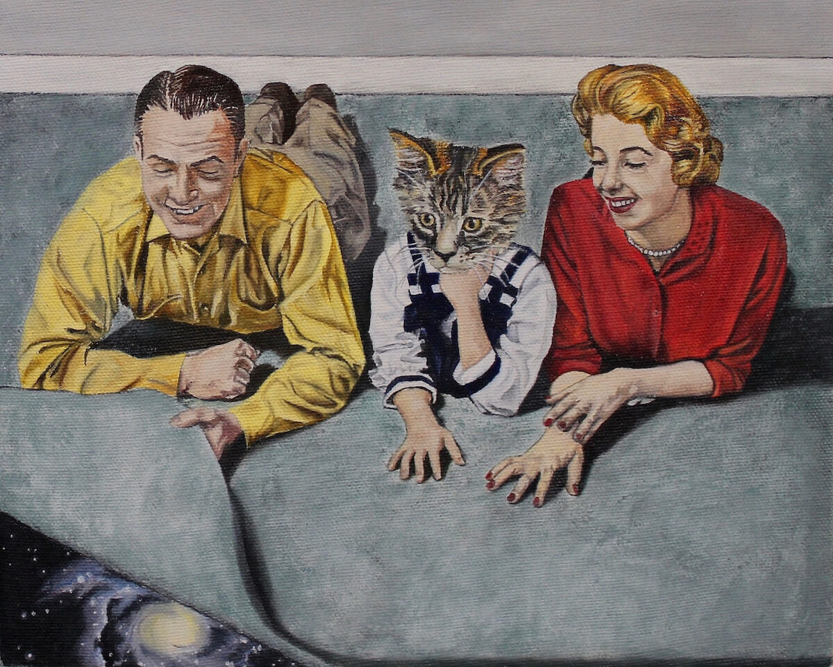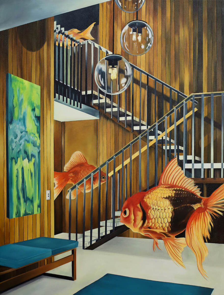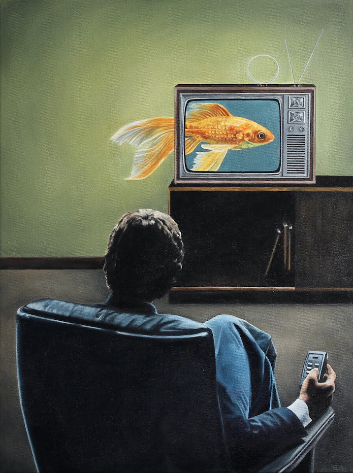 Paintings “Hand Grenade”, 2025, oil on canvas, 56cm x 43cm “Crown of Thorns”, 2025, oil on canvas, 101cm x 76cm “July 20, 1963”, 2025, oil on canvas, 43cm x 56cm “Dear John”, 2025, oil on canvas, 20.3cm x 20.3cm “House Cats II”, 2025, oil on canvas, 35.5cm x 28cm “Interference”, 2025, oil on canvas, 28cm x 35.5cm “What’s the Plan?”, 2025, oil on canvas, 35.5cm x 28cm “Indigo on Green”, 2025, oil on canvas, 35.5cm x 28cm “Deft Hand, Slow Burn”, 2025, oil on canvas, 61cm x 76cm “Hand in Hand”, 2024, oil on canvas, 56cm x 43cm “Relics II”, 2024, oil on canvas, 43cm x 56cm “Take Me Back Where I Came From”, 2024, oil on canvas, 91cm x 61cm “House Cats”, 2024, oil on canvas, 61cm x 76cm “Woman with Cat”, 2024, oil on canvas, 152cm x 122cm “Rituals”, 2023, oil on canvas, 46cm x 61cm “Wallflowers”, 2022, oil on canvas, 81.2cm x 60.9cm “Relics”, 2022, oil on canvas, 28cm x 35cm “The Goldfish Ratio”, 2022, oil on canvas, 61cm x 46cm “The Fish and the Photographer”, 2021, oil on canvas, 81.2cm x 60.9cm “Yesterday’s Vices”, 2021, oil on canvas, 61cm x 46cm “Ahead of Time”, 2019, oil on canvas, 91cm x 136.8cm “The Last Arch”, 2019, oil on canvas, 147cm x 121cm “Fish Ascending a Staircase”, 2019, oil on canvas, 81.2cm x 60.9cm “A Plot for Revenge”, 2019, oil on canvas, 50.8cm x 50.8cm “Rare Findings”, 2019, oil on canvas, 35.5cm x 28cm “The Relay of Eons”, 2019, oil on canvas, 35.5cm x 28cm “Off-Hook Party Line”, 2018, oil on canvas, 20.3cm x 25.4cm “Quality Family Time (and Space)”, 2018, oil on canvas, 20.3cm x 25.4cm “Self-Portrait” (2018)