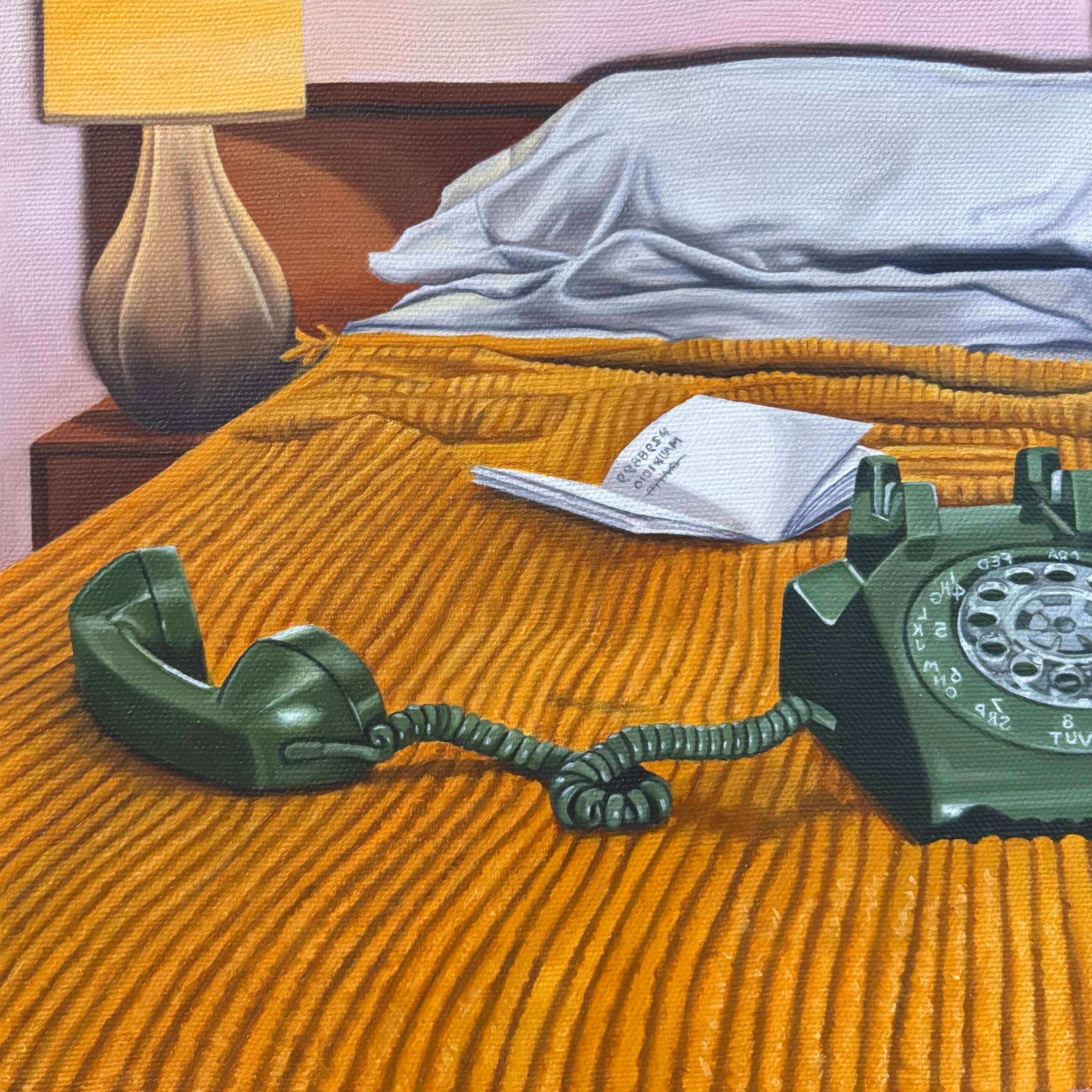 Paintings “Hung Up On You”, 2026, oil on canvas, 20.3cm x 20.3cm “Hand Grenade”, 2025, oil on canvas, 56cm x 43cm “Crown of Thorns”, 2025, oil on canvas, 101cm x 76cm “July 20, 1963”, 2025, oil on canvas, 43cm x 56cm “Dear John”, 2025, oil on canvas, 20.3cm x 20.3cm “House Cats II”, 2025, oil on canvas, 35.5cm x 28cm “Interference”, 2025, oil on canvas, 28cm x 35.5cm “What’s the Plan?”, 2025, oil on canvas, 35.5cm x 28cm “Indigo on Green”, 2025, oil on canvas, 35.5cm x 28cm “Deft Hand, Slow Burn”, 2025, oil on canvas, 61cm x 76cm “Hand in Hand”, 2024, oil on canvas, 56cm x 43cm “Relics II”, 2024, oil on canvas, 43cm x 56cm “Take Me Back Where I Came From”, 2024, oil on canvas, 91cm x 61cm “House Cats”, 2024, oil on canvas, 61cm x 76cm “Woman with Cat”, 2024, oil on canvas, 152cm x 122cm “Rituals”, 2023, oil on canvas, 46cm x 61cm “Wallflowers”, 2022, oil on canvas, 81.2cm x 60.9cm “Relics”, 2022, oil on canvas, 28cm x 35cm “The Goldfish Ratio”, 2022, oil on canvas, 61cm x 46cm “The Fish and the Photographer”, 2021, oil on canvas, 81.2cm x 60.9cm “Yesterday’s Vices”, 2021, oil on canvas, 61cm x 46cm “Ahead of Time”, 2019, oil on canvas, 91cm x 136.8cm “The Last Arch”, 2019, oil on canvas, 147cm x 121cm “Fish Ascending a Staircase”, 2019, oil on canvas, 81.2cm x 60.9cm “A Plot for Revenge”, 2019, oil on canvas, 50.8cm x 50.8cm “Rare Findings”, 2019, oil on canvas, 35.5cm x 28cm “The Relay of Eons”, 2019, oil on canvas, 35.5cm x 28cm “Off-Hook Party Line”, 2018, oil on canvas, 20.3cm x 25.4cm “Quality Family Time (and Space)”, 2018, oil on canvas, 20.3cm x 25.4cm “Self-Portrait” (2018)