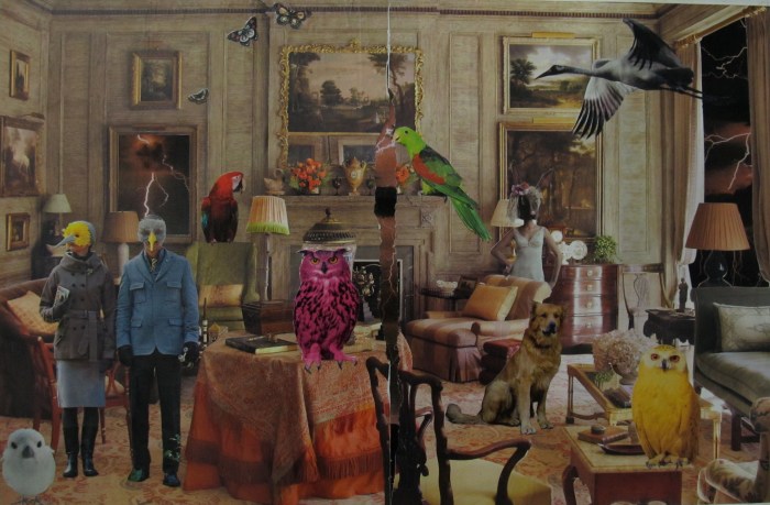 Tagged animals, Art, birds, butterflies, collage, dog, furniture, Interior, lightning, owl, storm, surrealism